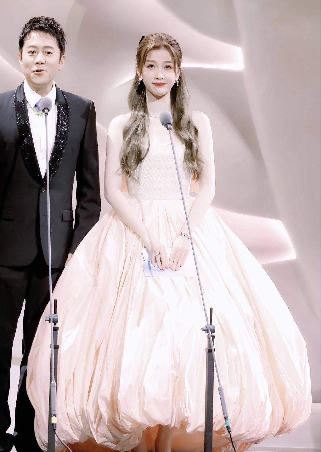 开奖嘉宾则是她和蔡国庆老师一起,两人同属于搞笑类型,站在一起的画面格外和谐,就像大叔牵着大侄女。虞书欣本身走的人设就是豪门小公主,她的穿搭自然是以清新公主风格为主。将头发做成轻熟的大波浪卷发,用蝴蝶结将头发半扎起来,更显娇俏少女感。